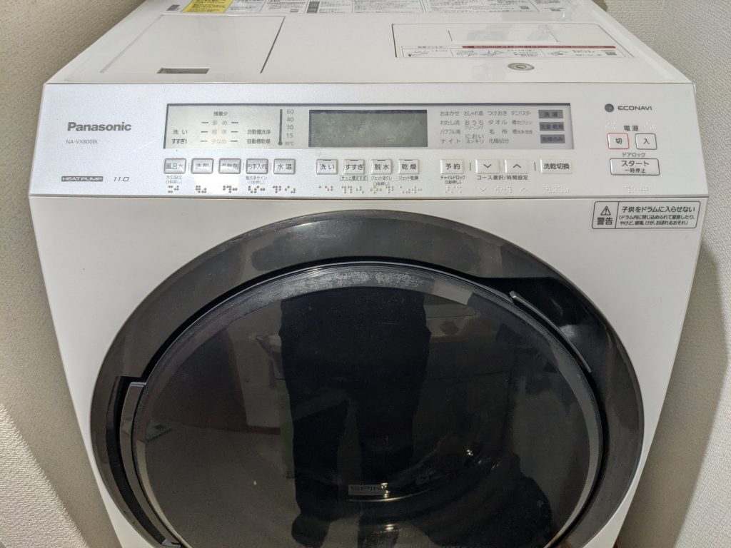 ↑我が家の洗濯機、PanasonicのNA-VX800BL。容量は確か11Lで3年ほど使用中。当時で型落ちのため20万円ほど。