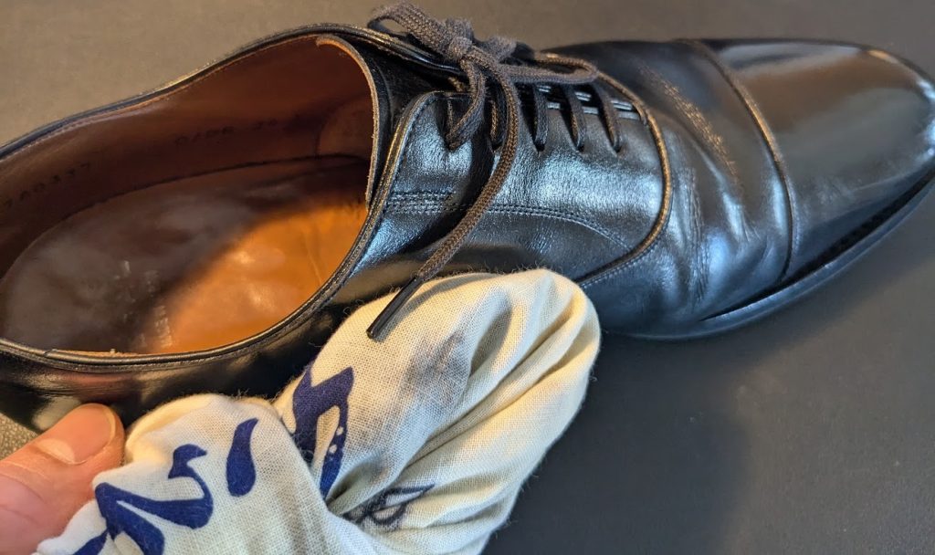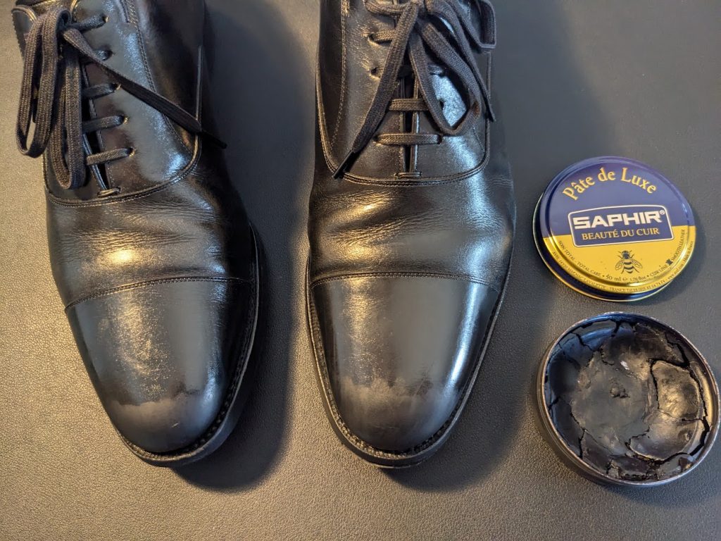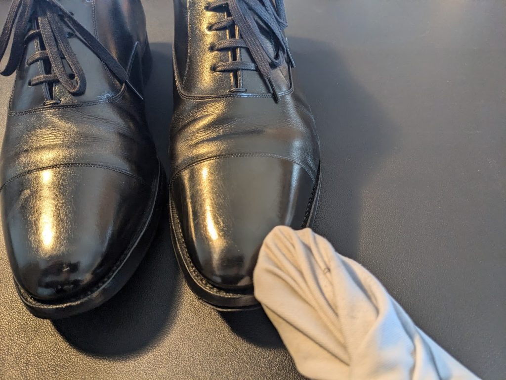 これは絶対に必要な工程ではありませんが、ぜひワックスをつま先に塗ってほしいと思っています。躓いたとき、すぐに傷がつくつま先を保護することができます。また鏡面磨きと言って、鏡のようにピカピカに磨き上げるためには必須になります。