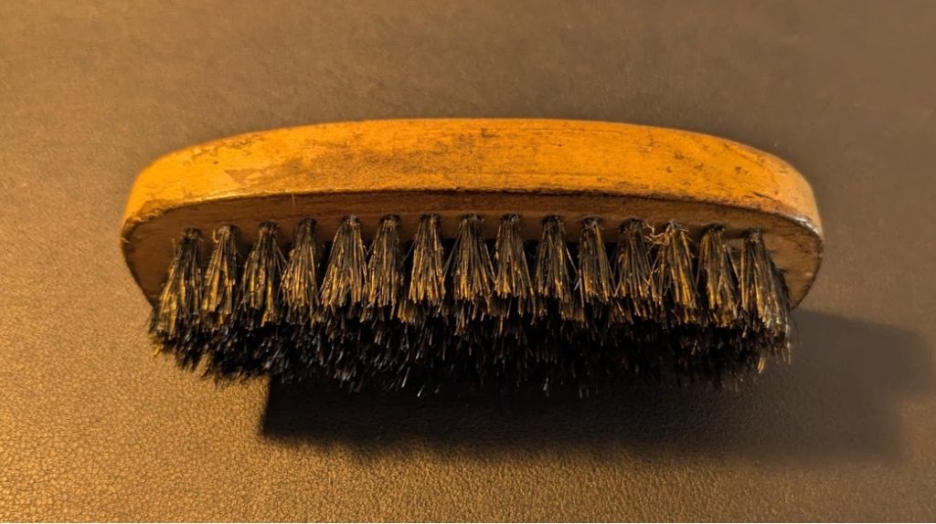 硬めのブラシで、クリーム、オイルをなじませ、磨くのに使う。定期的なケアには必須。
