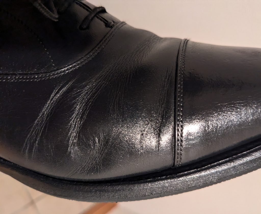 このくらいであれば目立ちませんが、気が付くと靴下が拝めるくらいに大きく割れてしまうことがあります。こうなるとさすがにみすぼらしいので、気を付けましょう。